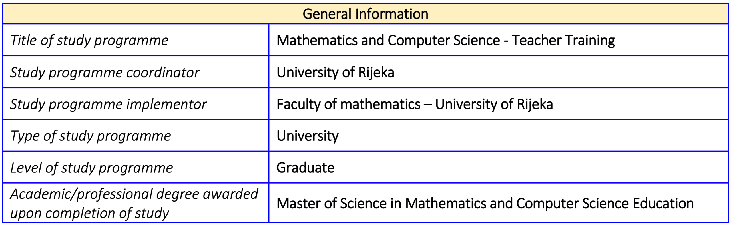 Graduate study – Mathematics and Computer Science, Teacher Training